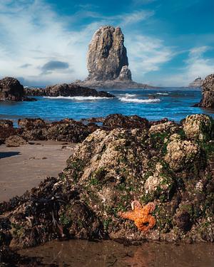 A starfish at the renowned marine garden of Haystock Rock on Cannon Beach, Oregon.